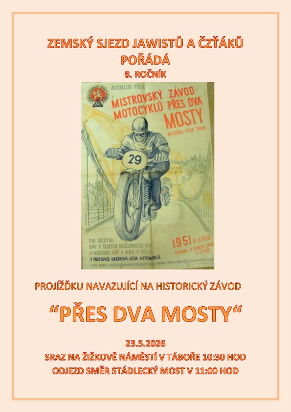 23. 05. 2026 - ZEMSKÝ SJEZD JAWISTŮ A ČZEŤÁKŮ TÁBOR - PROJÍŽĎKA PŘES DVA MOSTY