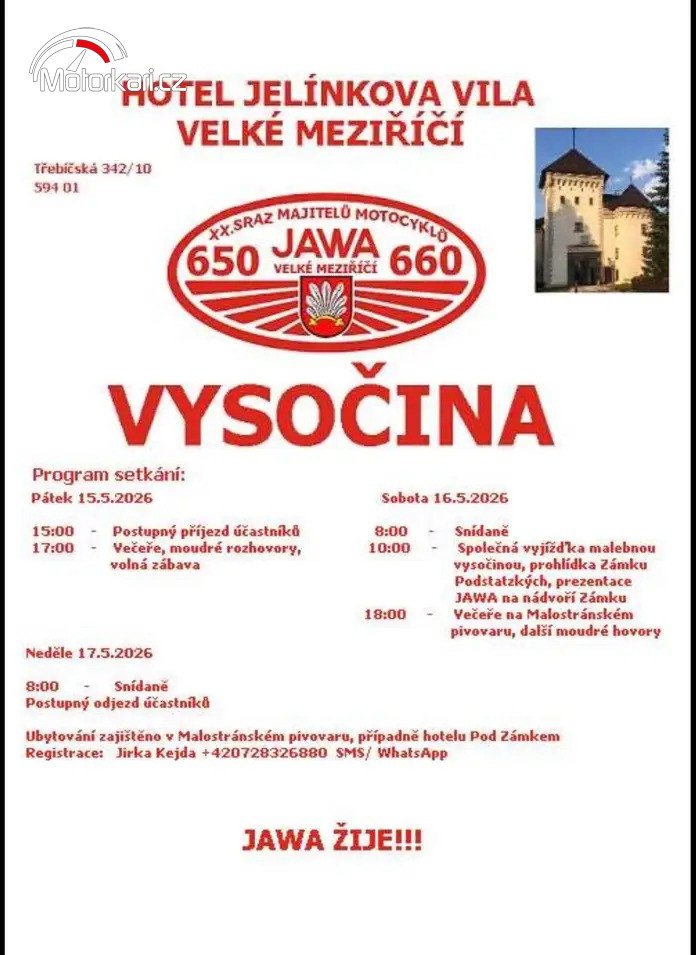Více na: Sraz XX.sraz majitelů Jawa 650-660 Velké Meziříčí 15.5.2026 | Motorkáři.cz